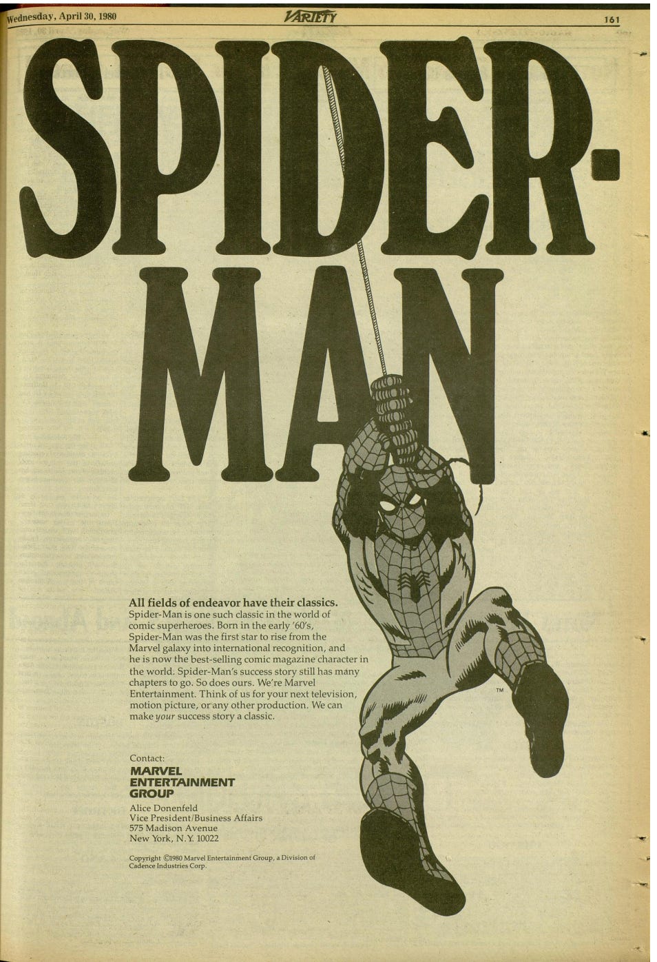 46 years ago, Marvel was an ignored IP and had to take out ads like this to tout its characters and its prowess. Spider-Man’s success story still has many chapters to go. So does ours. We’re Marvel Entertainment. Think of us for your next television, motion picture, or any other production. We can make your success story a classic.