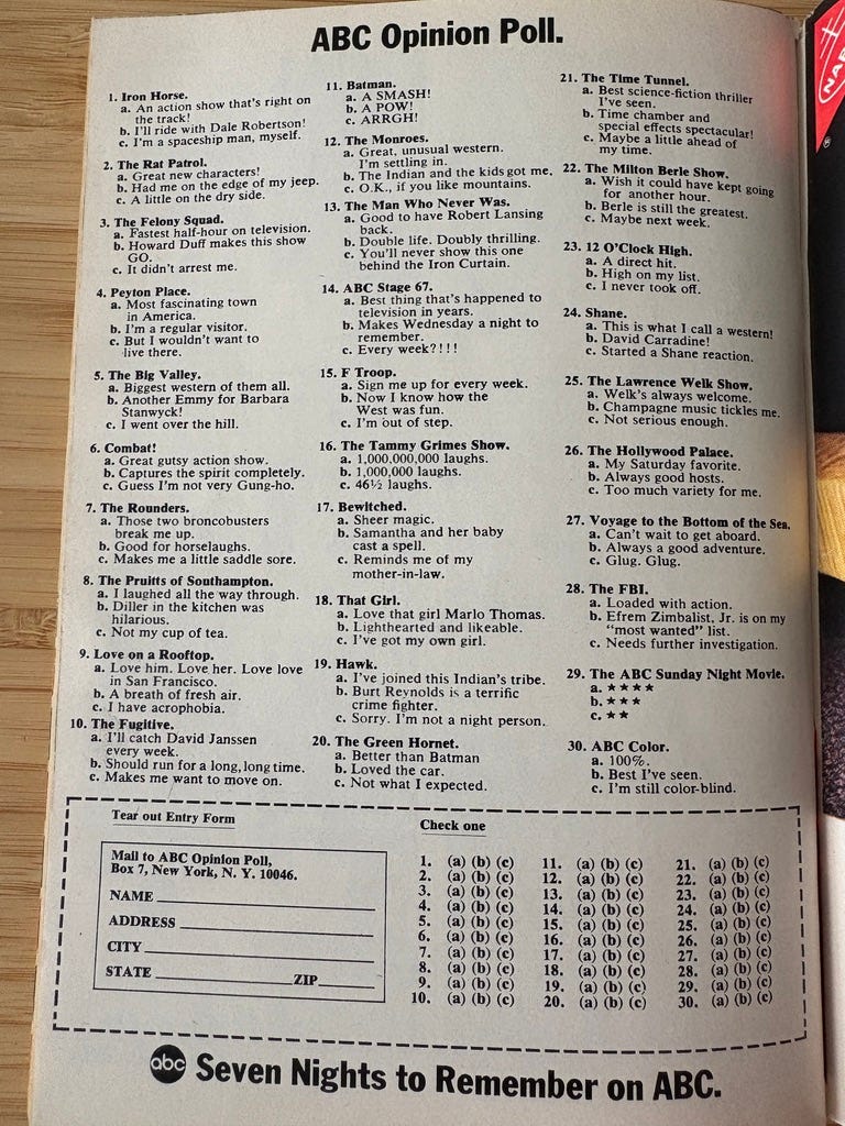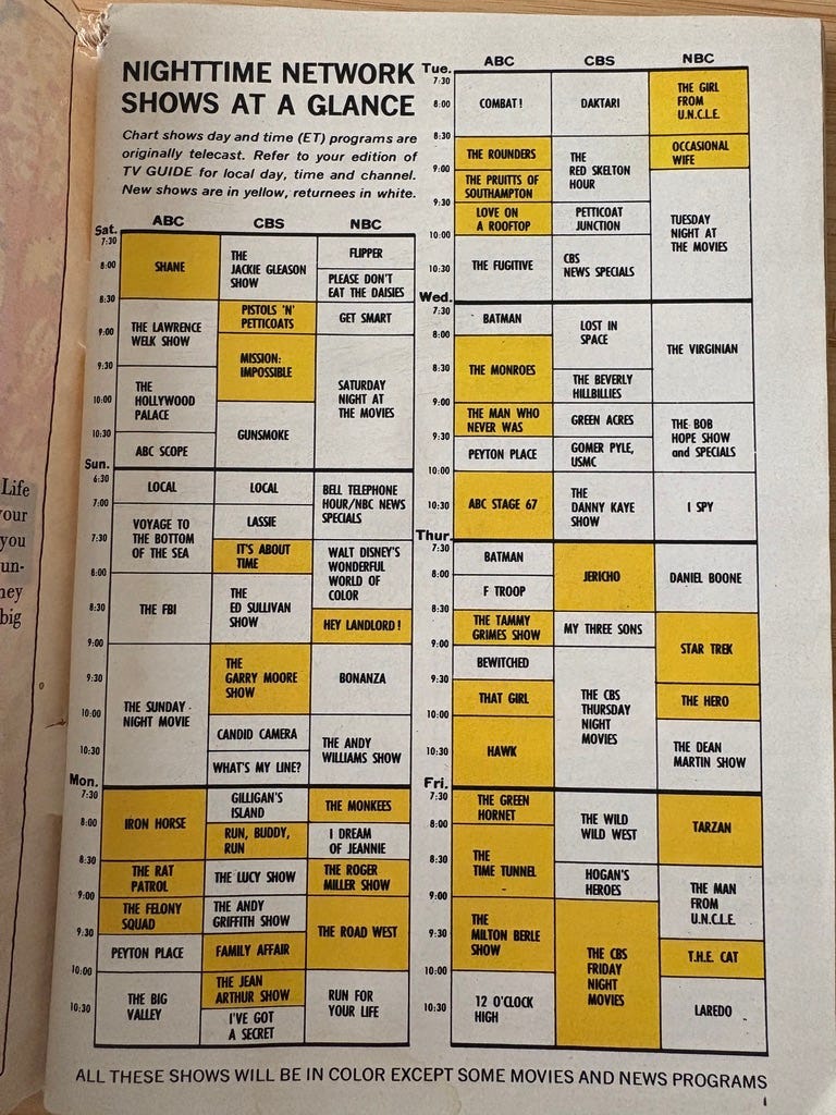 Let’s take a deep dive into the pages of the 1966/67 TV Guide Fall Preview which document some momentous events in TV and also some smaller but notable ones.