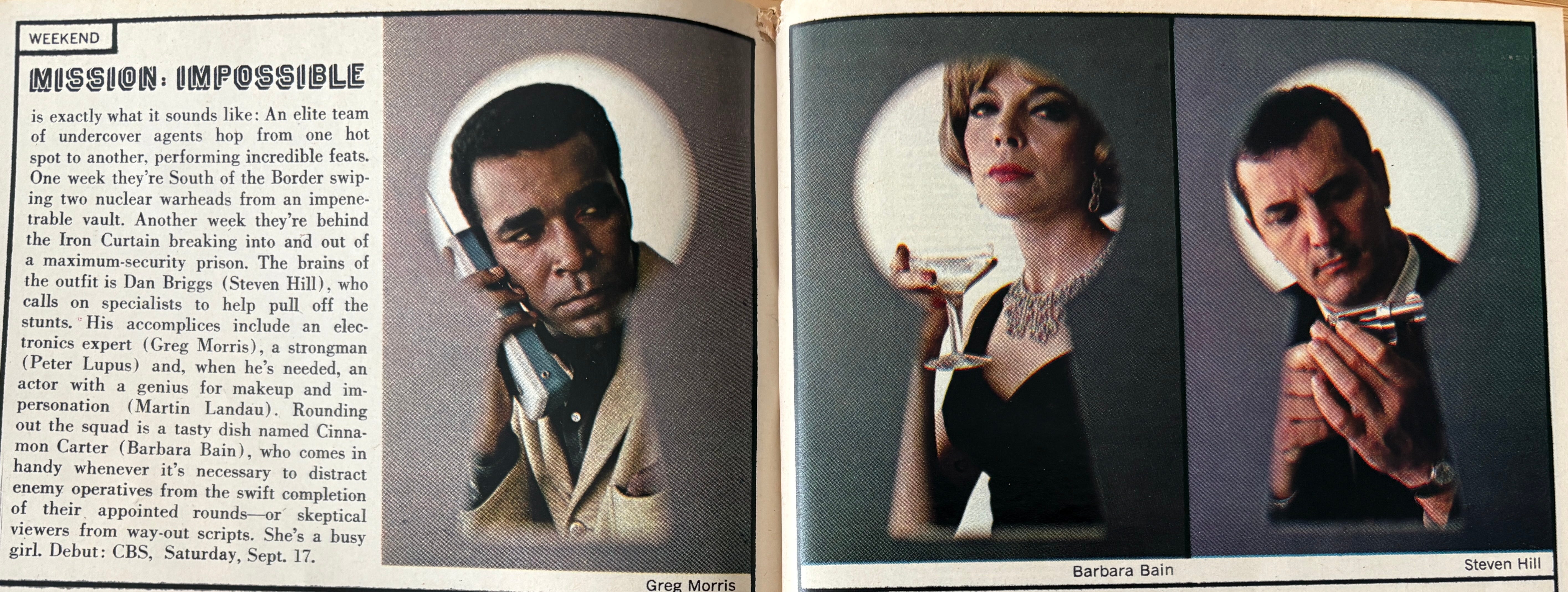 This issue formerly introduces two billion dollar pieces of intellectual property with both Star Trek and Mission Impossible debuting here (although Star Trek had technically premiered the prior week on 9/8). Both came from Desilu studios and when Paramount bought Desilu they ended up at that studio with successful content from one or both over the last four decades.