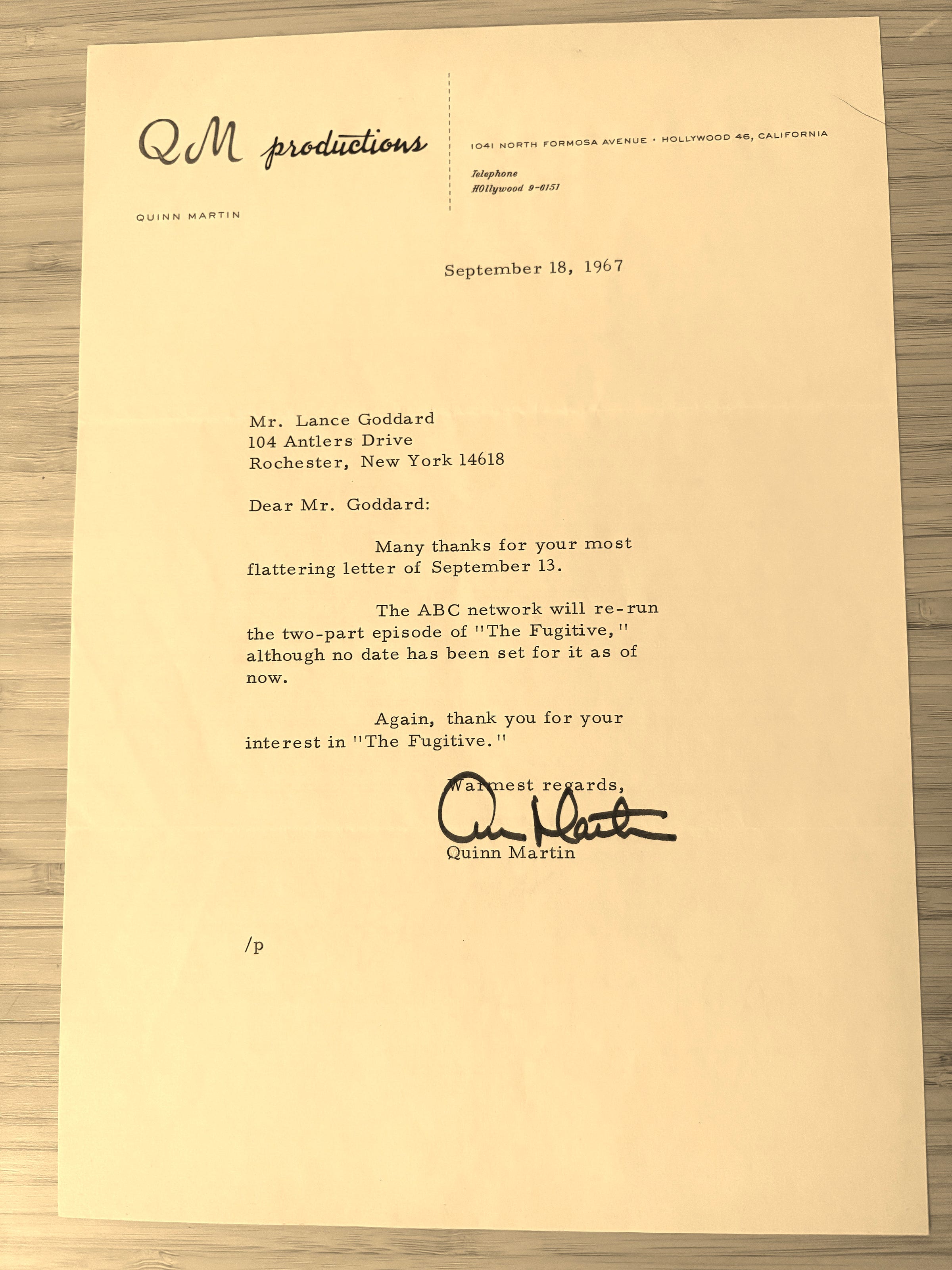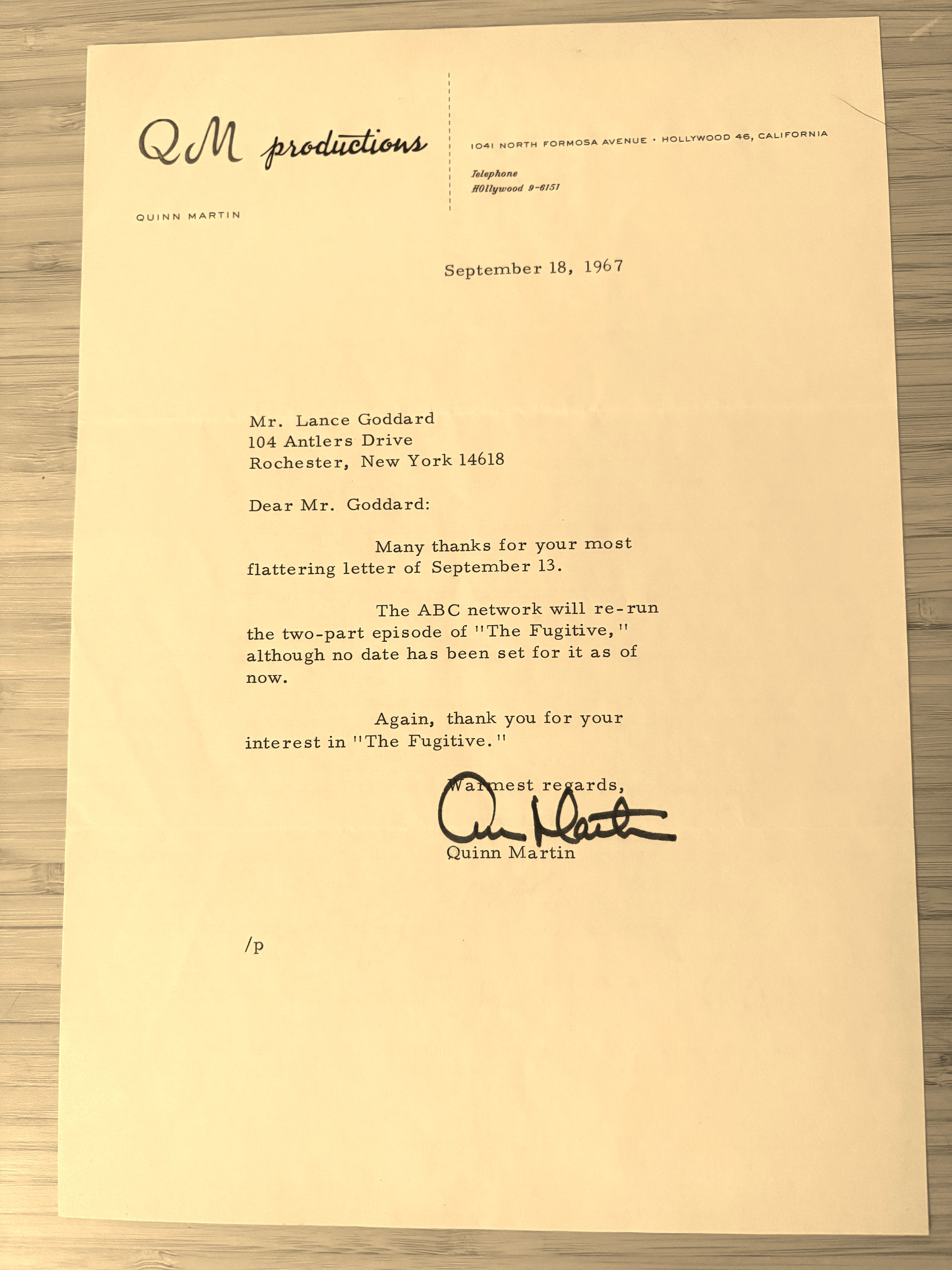 In this letter just two weeks later a TV viewer, who of course had no internet or other scheduling resource other then the current week’s TV Guide or newspapers, asked Martin himself when the two episodes would air again, a ballsy move. Martin states that he does not know of a date but does know that it will re-air.