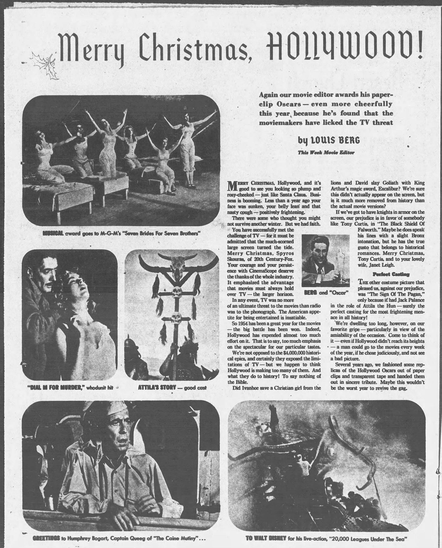 Back in the 1950s the rise of television spelled doom to movie theater attendance, or so the hand-wringers of the time would have you believe. This 12/19/54 article celebrates that “Hollywood”, meaning movies, “successfully met the challenge of TV” even though “some thought [it] might not survive another Winter.” Yet in the end “TV was no more of an ultimate threat to the movies than radio was to the phonograph.” Yes, people loved to watch older movies at home but that did not diminish the thrill of seeing a new movie on the big screen; with others; with popcorn; with soda. Even a pandemic in the 2020s could not destroy the movies - change it yes - but not destroy it (Lilo & Stitch anyone?)